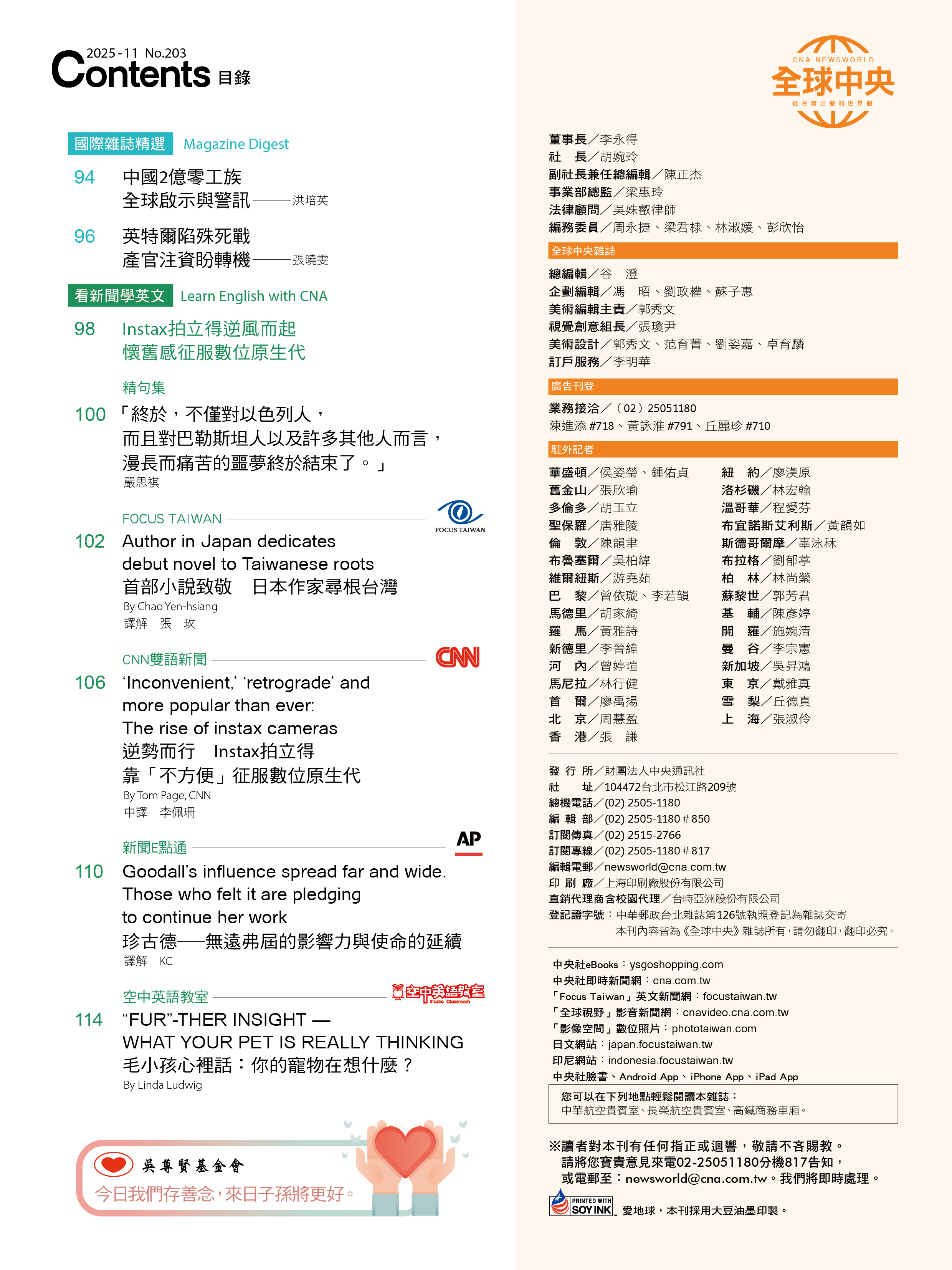 《全球中央》特闢〈開箱地球村〉單元,透過分布世界五大洲記者的在地觀察,從台灣人的角度,分享在異鄉食衣住行育樂、社會制度、各式見聞與文化衝擊。(詳見78頁)