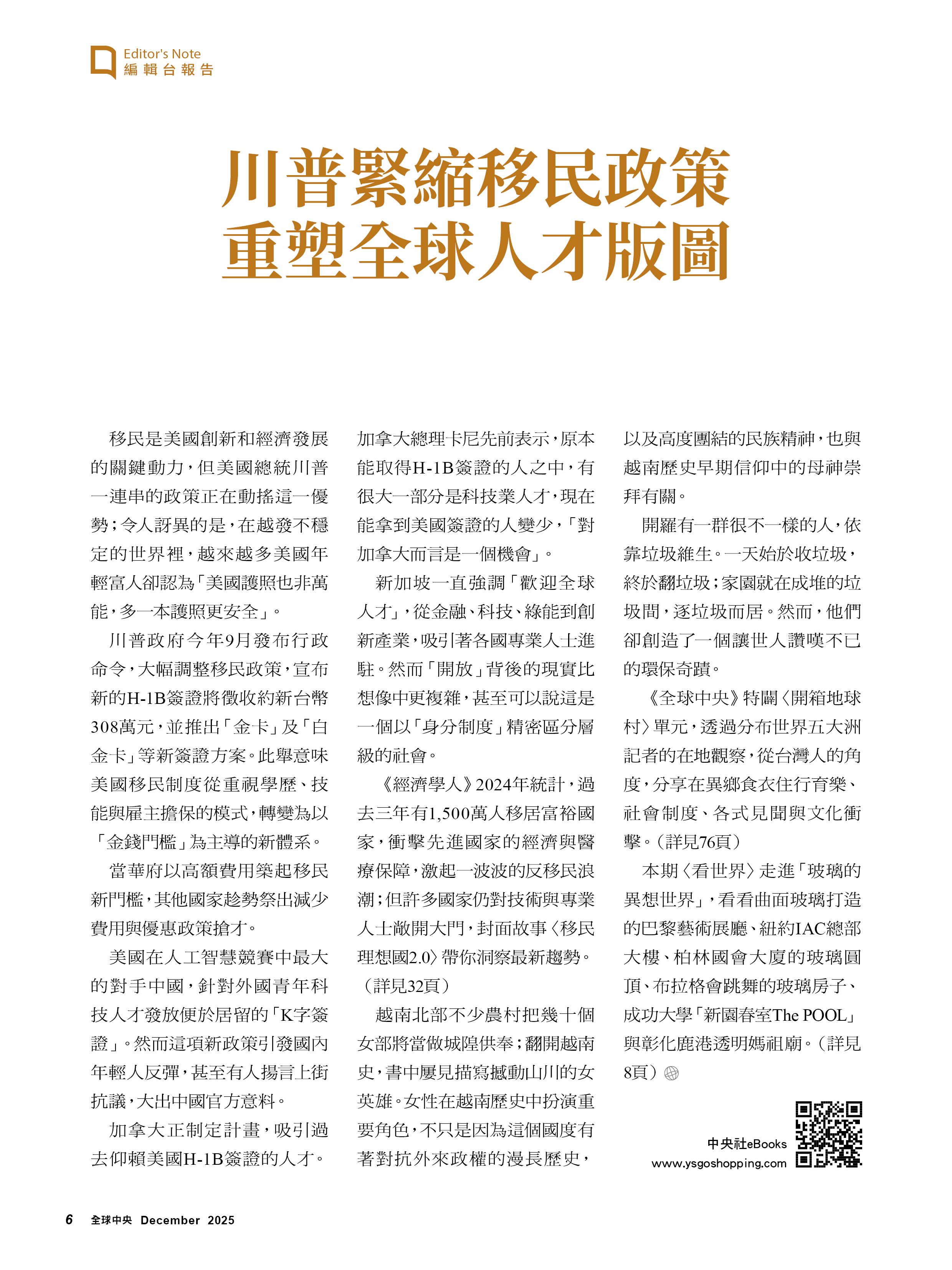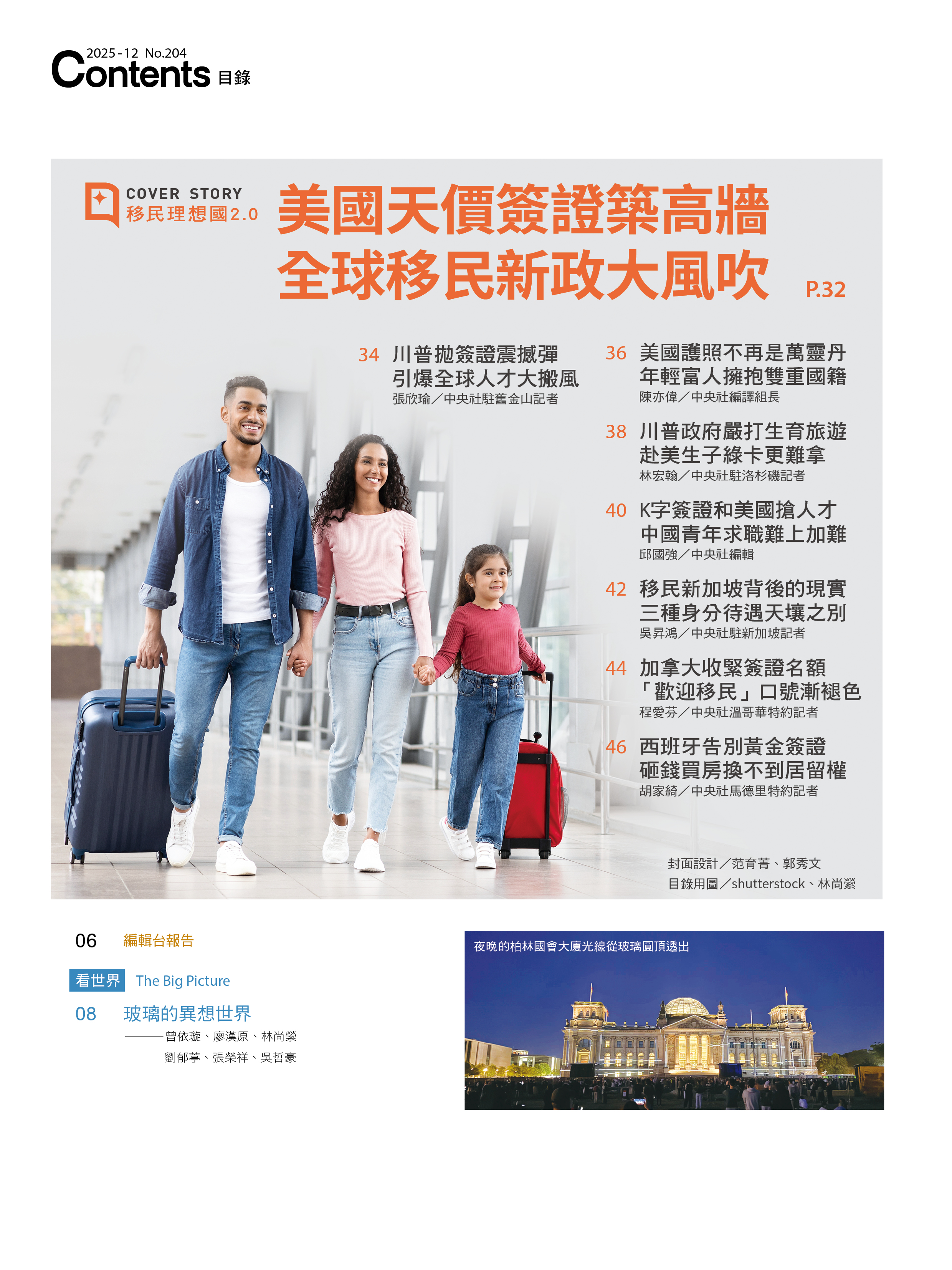 《經濟學人》2024年統計,過去三年有1,500萬人移居富裕國家,衝擊先進國家的經濟與醫療保障,激起一波波的反移民浪潮;但許多國家仍對技術與專業人士敞開大門,封面故事〈移民新風向〉帶你洞察最新趨勢。(詳見36頁)