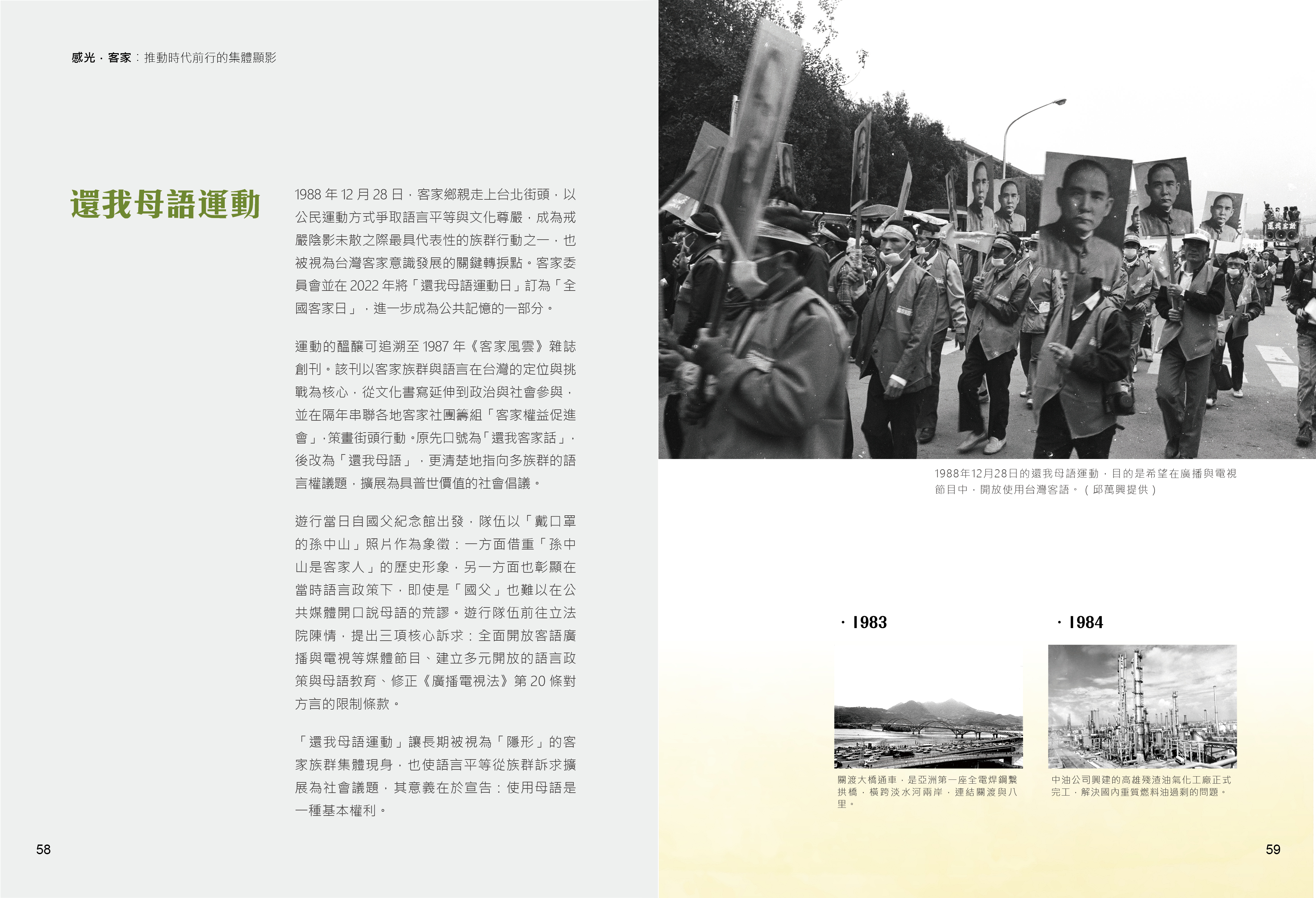 這不只是一部客家影像書,更是台灣民主進程的共同軌跡。以相片沖洗的「顯影」為喻,用100餘幀珍貴影像串連,呈現客家族群如何從長期被忽視的「隱形者」,走向公共場域的「現身者」,並在關鍵時刻成為推動社會前行的重要力量。